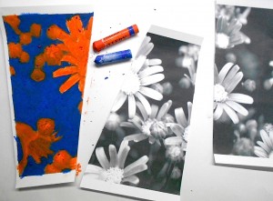 Option 1: Pick one complementary color pair. Color the flower one color and the background with the complementary color.